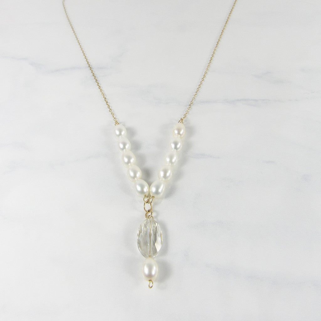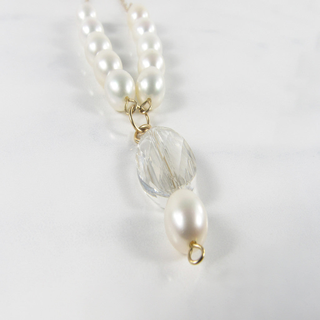 - 14k Gold-fill, Swarovski crystal, and Freshwater pearl